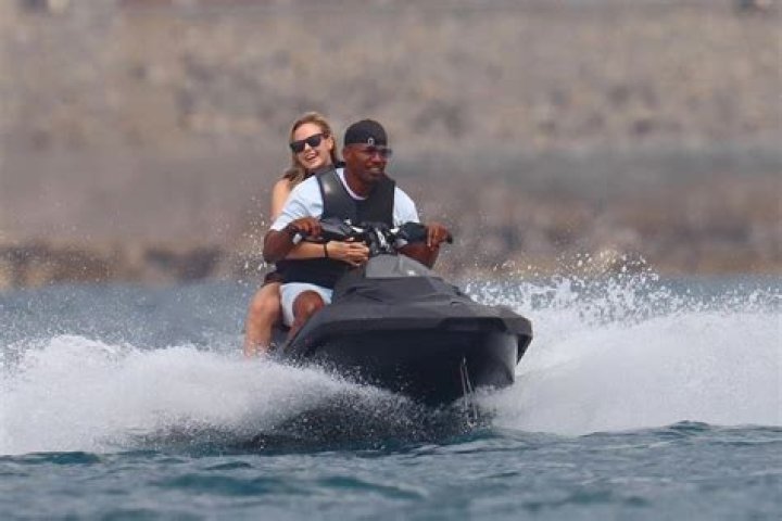 The woman wore a brilliant red two-piece with dull shorts over the base. On the fly ski, she embraced Foxx immovably as they zoomed through the water.
