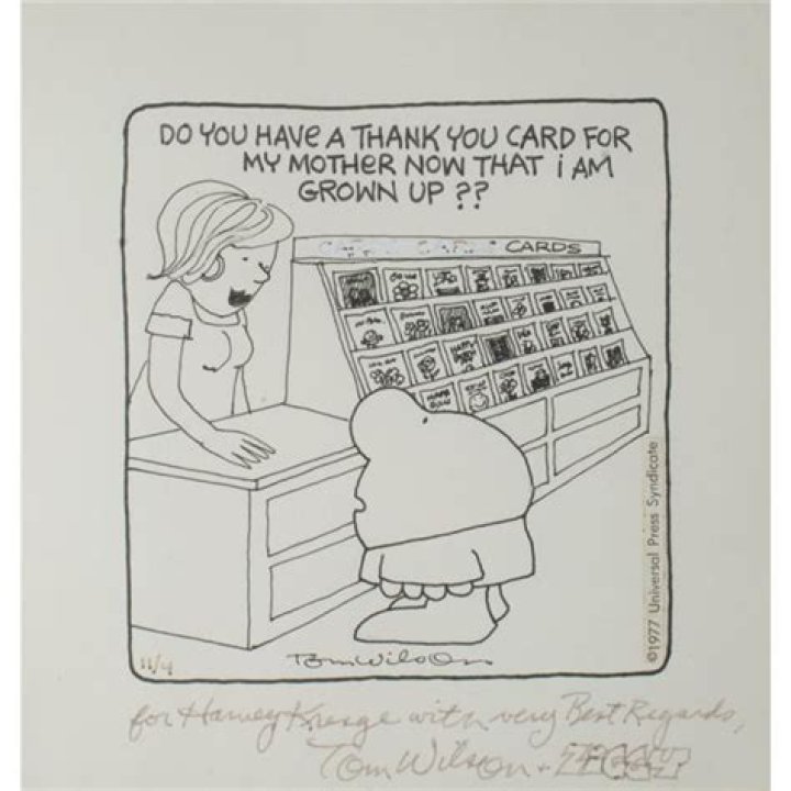 In 1987, Wilson passed the Ziggy torch to his son, Tom Wilson Jr., after the younger Wilson had served as an assistant on the strip for many years. Even though Tom Sr. lived in Cleveland and Tom Jr. lived in Cincinnati, the two worked as a team, collaborating by fax and phone.