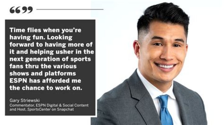 Gary Striewski is the host of SportsCenter on Snapchat, which gives the most exceptional games news, features, and critique while keeping up with the tomfoolery, energy, and character that Snapchat clients appreciate.